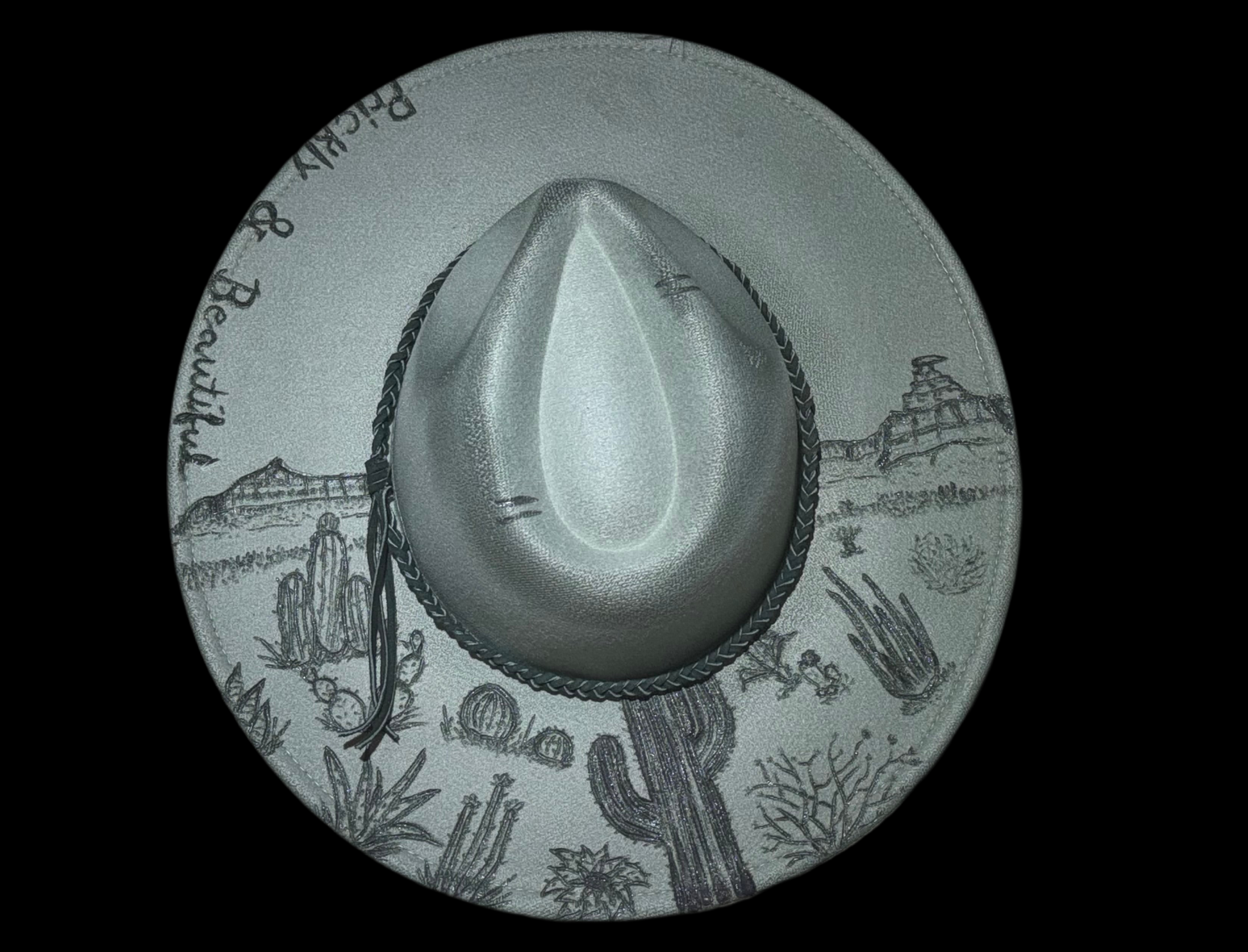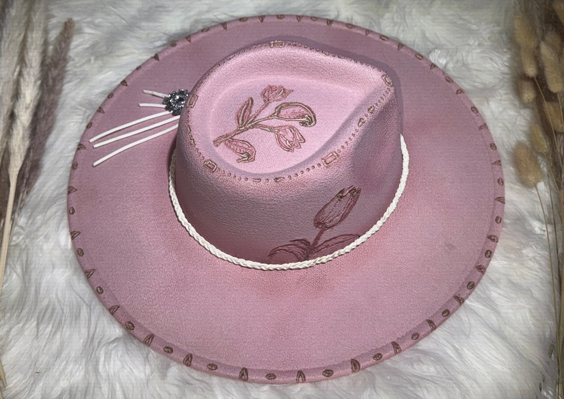 Velvet burned cowboy hats. Hats are custom designed and burned by my sister. Will take custom orders if you are interested in different colors and designs.